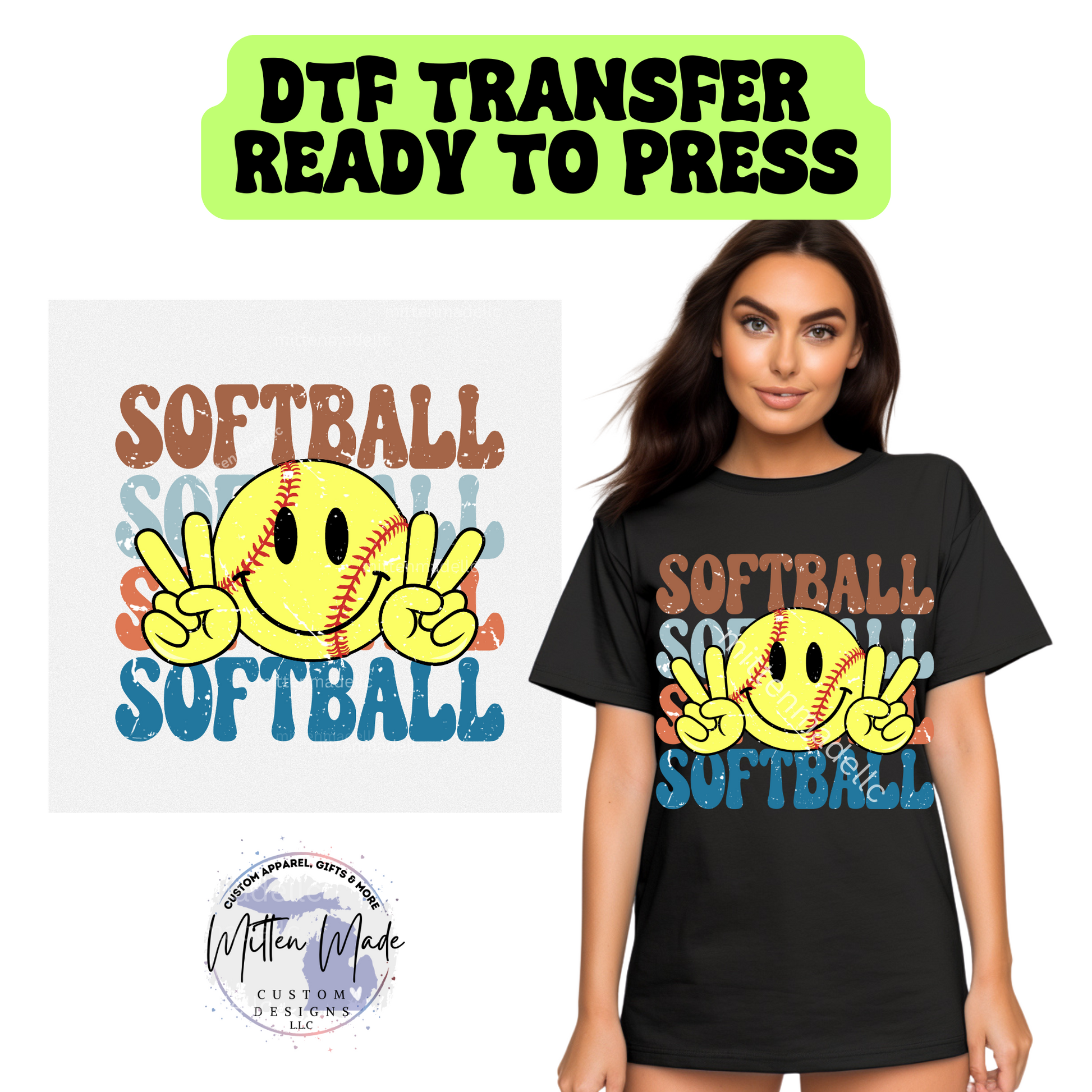 Peace Sign Softball DTF Transfer