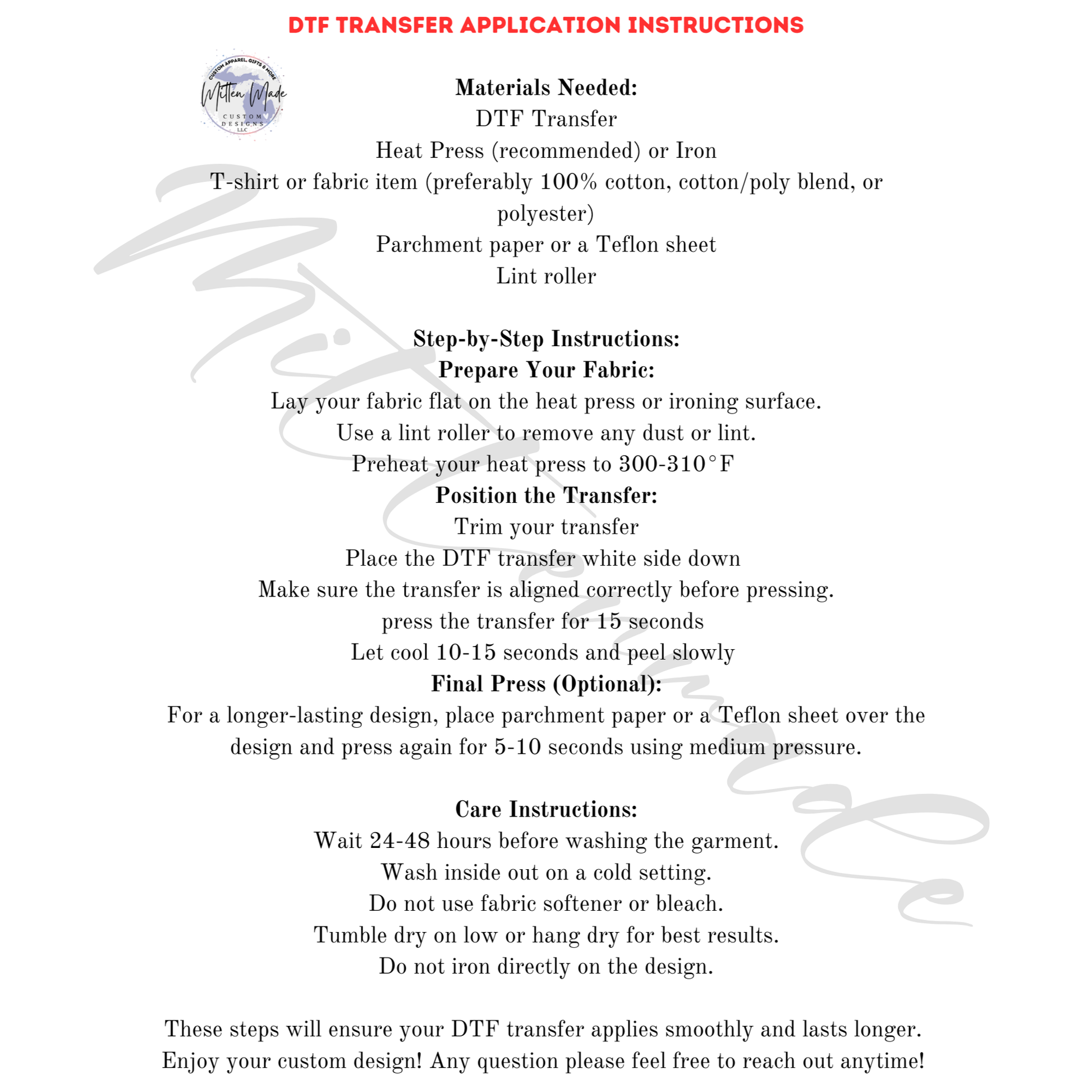 - Long-Lasting: Our transfers are made to withstand multiple washes without fading or cracking.