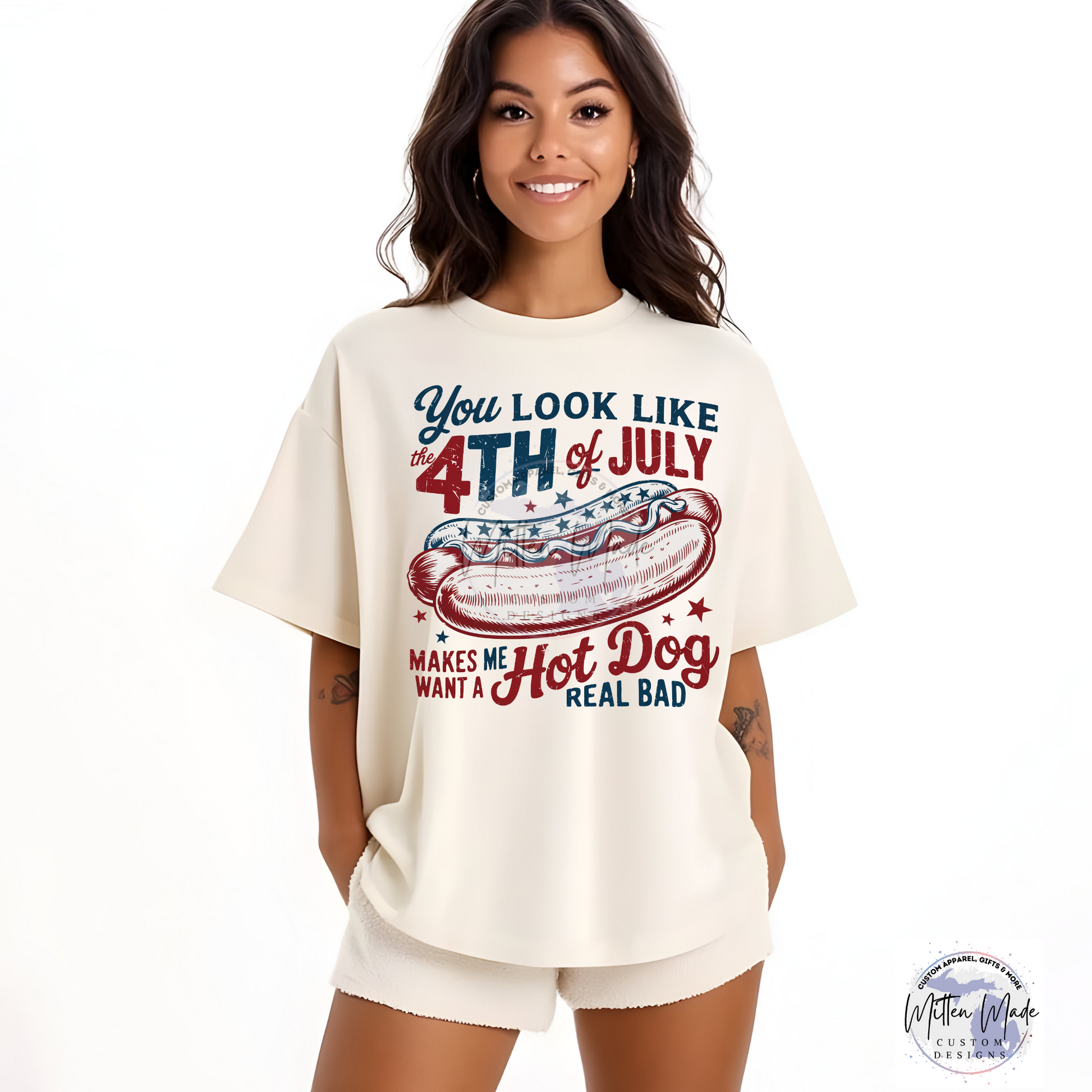 You look Like the Fourth Of July makes Me Want A Hotdog Real bad DTF Transfer